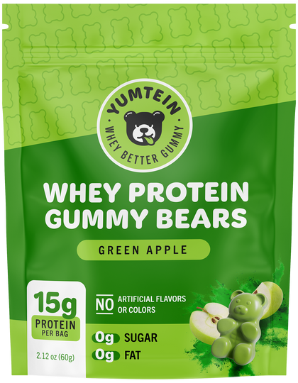 Love a snack with a little bite? Yumtein Green Apple Protein Gummy Bears deliver 15g of protein in every bag. Made with high-quality whey protein isolate, these bears support muscle recovery and help build gains — all in a soft, chewy gummy with a crisp, tart finish.